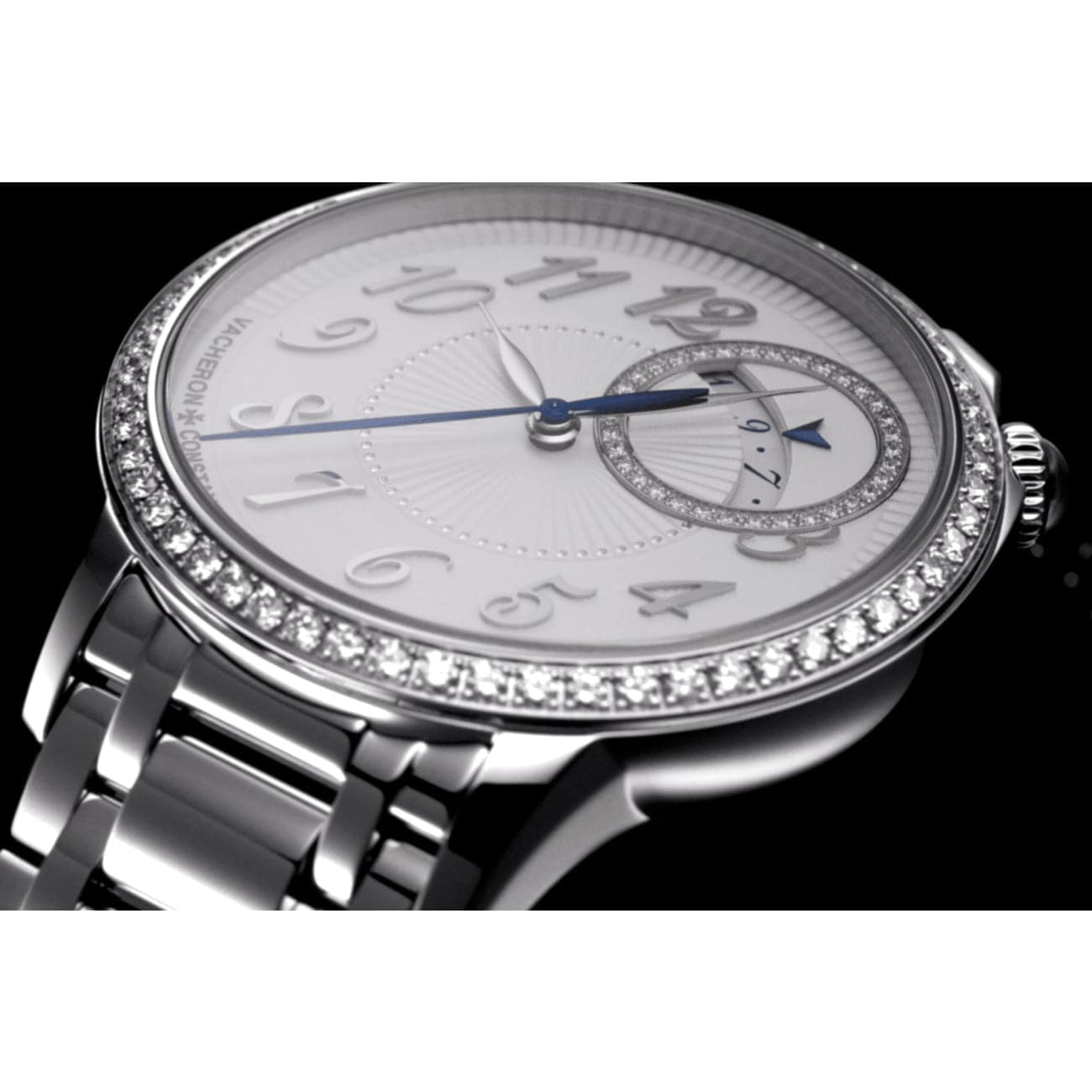 An original signature piece inspired by Vac’s heritage: an off-center display and asymmetric geometry. Starting with the display, offset along a diagonal line running between the logo and the crown positioned at half-past one, this complication is skillfully composed with curves and intertwined circles.