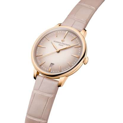 Faithful to its understated, timeless elegance inherited from the 1950s, this self-winding watch has a refined feminine identity, featuring a redesigned curvature with a slightly domed gradient tone dial. With a diameter of 36.5 mm, it comes in 18K 5N rose gold with a blush pink dial, a bezel set with 72 diamonds, and a circular-grained minute-counter. The seeming simplicity of the self-winding Patrimony is the result of meticulous attention to detail, as further evidenced by the finishes on its 2450 Q6/3 caliber, displaying the hours, minutes, seconds and date. It features an interchangeable strap that can be released by pressing lightly on a single-push button, with no need for a tool.